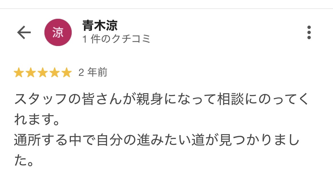 Screenshot1年間利用させていただきました。一時は通えない時期もあったのですが、リタリコの環境や適度な人との距離感のおかげで再び通えるようになりました。