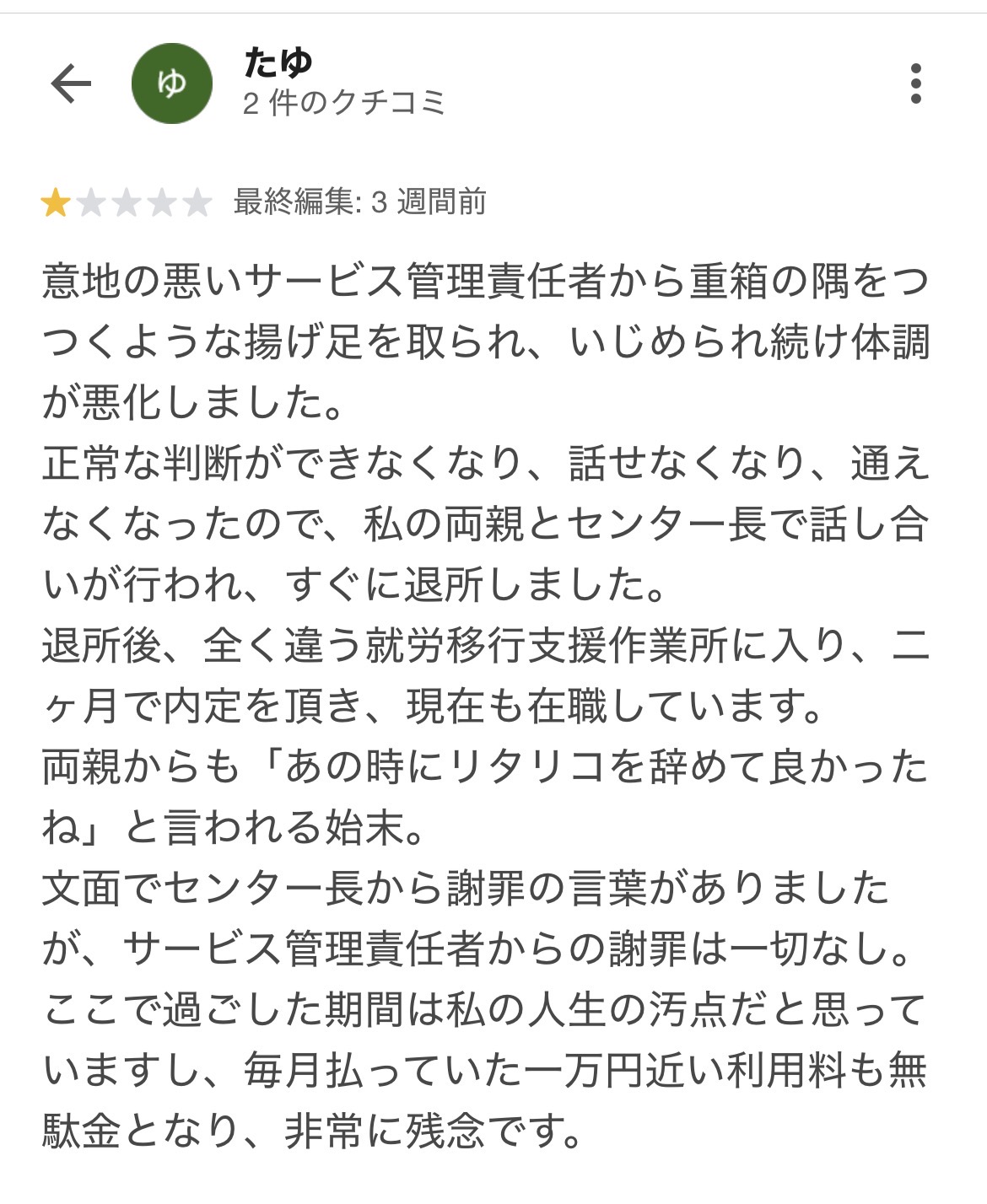 先ほどはリタリコワークスの良い口コミの例を見て頂きました。