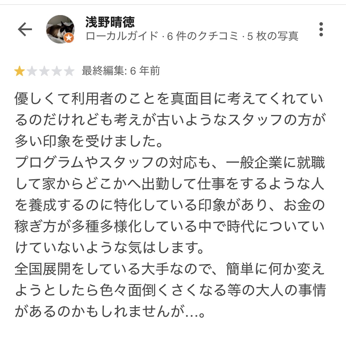Screenshot優しくて利用者のことを真面目に考えてくれているのだけれども考えが古いようなスタッフの方が多い印象を受けました。