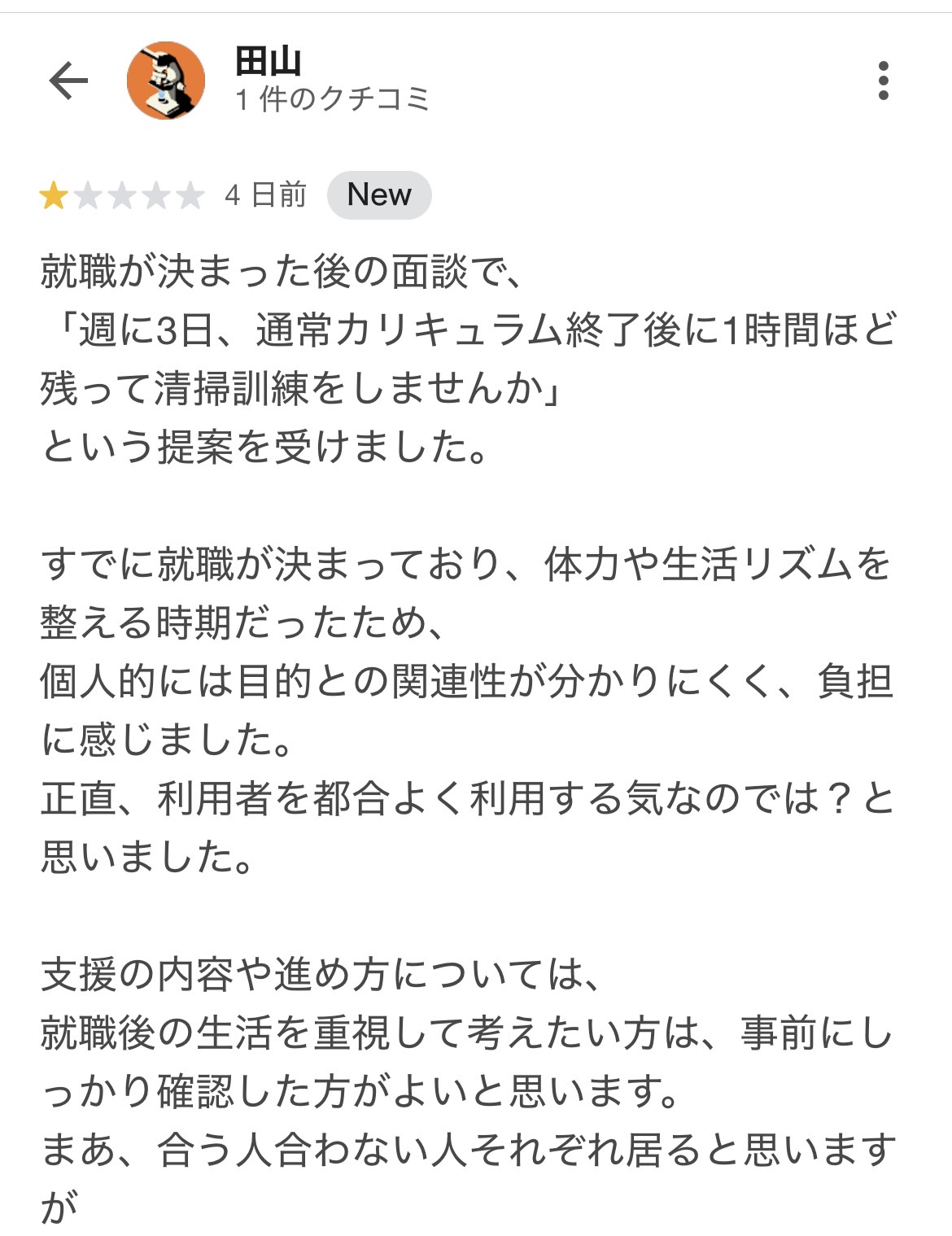 正直、利用者を都合よく利用する気なのでは?と思いました。支援の内容や進め方については、