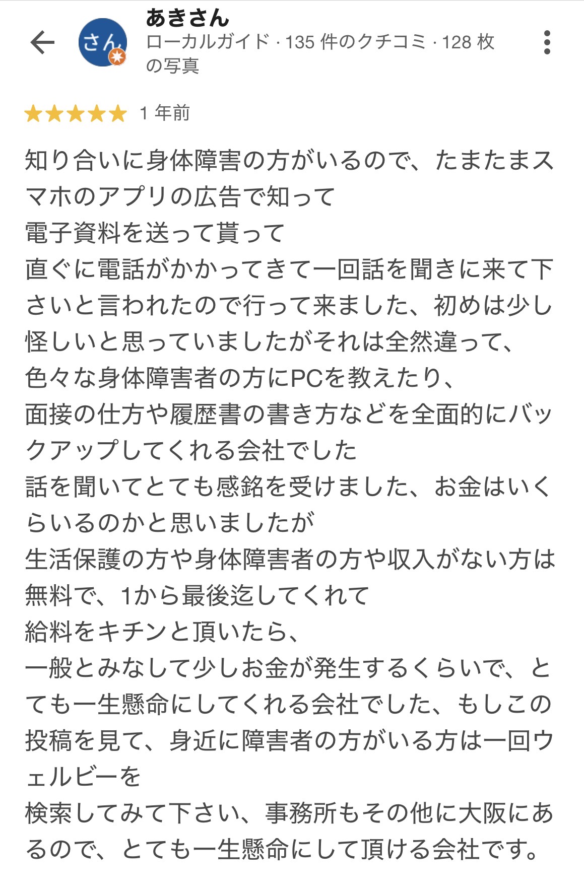 一般とみなして少しお金が発生するくらいで、とても一生懸命にしてくれる会社でした、もしこの投稿を見て、身近に障害者の方がいる方は一回ウェルビーを